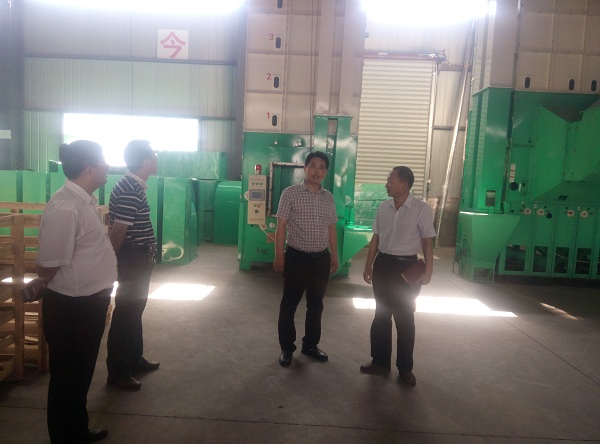 辛局長一行先后參觀了公司生產車間、裝配車間等,詳細了解企業(yè)目前的發(fā)展狀況及生產運營等情況,現場針對目前糧食行業(yè)及谷物干燥行業(yè)存在的問題進行了詳細了解,對于在全國經濟不景氣及同行競爭壓力的情況下,公司產品銷量穩(wěn)步增長表示高度的贊賞和極度的肯定。